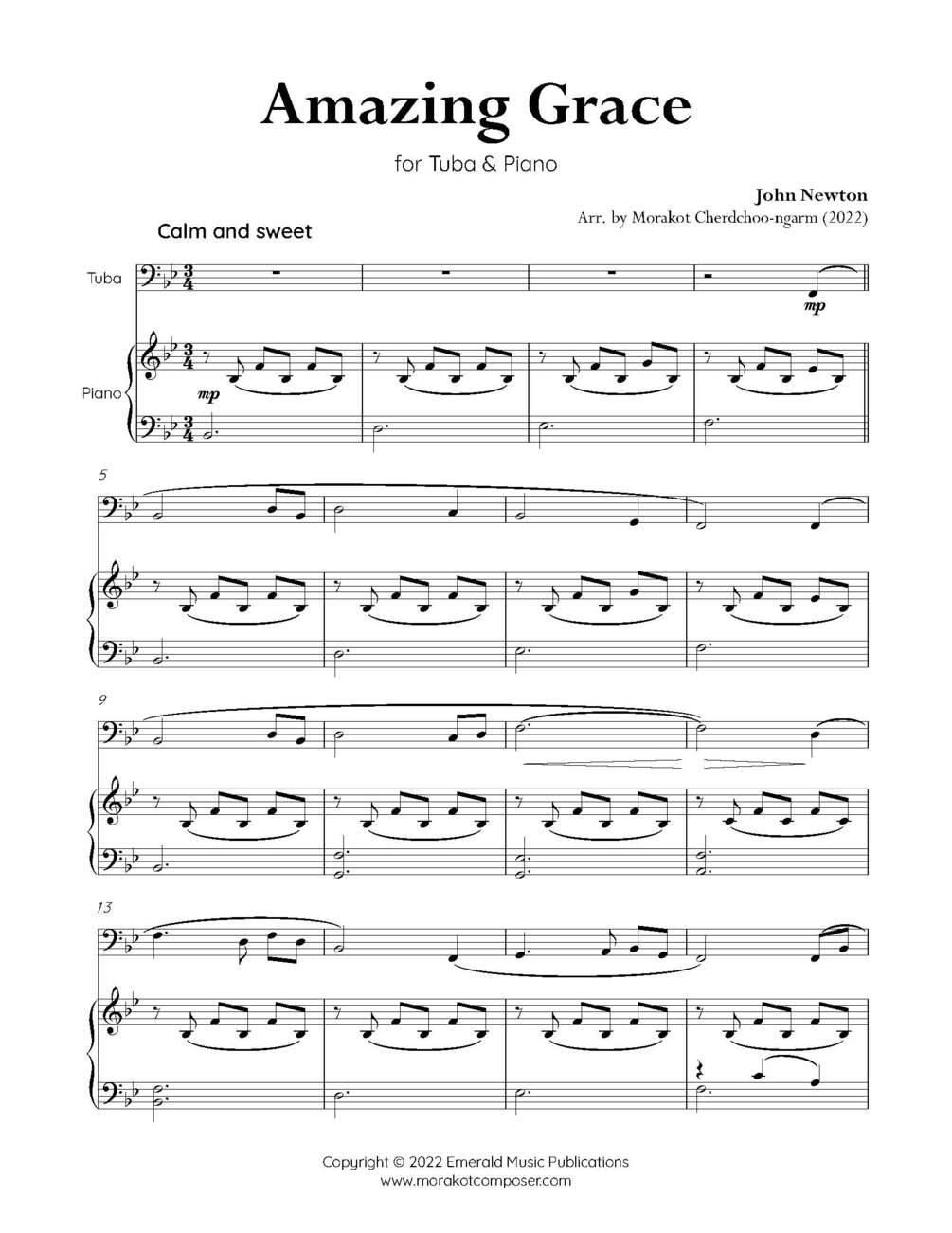 AMAZING GRACE for Tuba & Piano