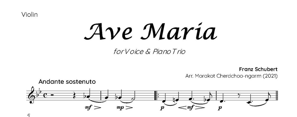 Ave Maria (Schubert) for Voice & Piano Trio Accompaniment (Score & Parts) [PDF]